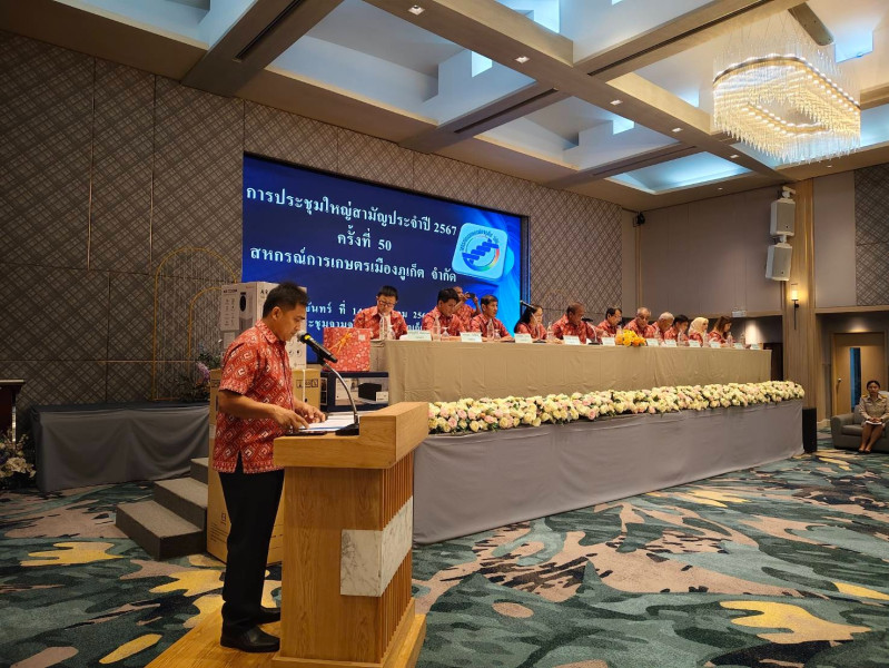 วันจันทร์ที่ 14 กรกฎาคม พ.ศ. 2568 เวลา 13.00 น. นายฉัตรชัย ศิริรัตน์ สหกรณ์จังหวัดภูเก็ต มอบหมายให้นางสาวธนภร สังขพันธ์ ผู้อำนวยการกลุ่มส่งเสริมสหกรณ์ 1 พร้อมด้วยนางสาวสุภาวดี เจริญผล นักวิชาการสหกรณ์ชำนาญการ เข้าร่วมประชุมใหญ่สามัญประจำปี 2567 สหกรณ์การเกษตรเมืองภูเก็ต จำกัด ณ ห้องประชุมจามจุรี 1 โรงแรมภูเก็ตเมอร์ลิน อำเภอเมืองภูเก็ต จังหวัดภูเก็ต