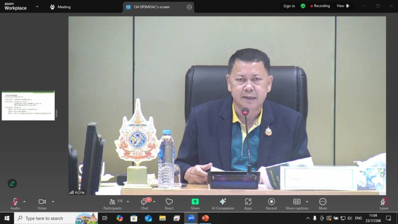 วันพุธที่ 23 กรกฎาคม 2568 เวลา 11.00 น. นางสาวสุมนา ณ นคร ผู้อำนวยการกลุ่มจัดตั้งและส่งเสริมสหกรณ์ รักษาราชการแทนสหกรณ์จังหวัดภูเก็ต เข้าร่วมประชุมศูนย์ติดตามและแก้ไขปัญหาภัยพิบัติด้านการเกษตร กระทรวงเกษตรและสหกรณ์ ครั้งที่ 3/2568 ผ่านระบบ ZOOM MEETING ซึ่งเป็นการประชุมเพื่อเตรียมการรับสถานการณ์อุทกภัยที่อาจจะเกิดขึ้นจากพายุโซนร้อน "วิภา (Wipha)" ที่จะส่งผลกระทบทำให้มีฝนตกหนักถึงหนักมากในพื้นที่ภาคเหนือ ภาคอีสานตอนบน ภาคกลางด้านตะวันตก ในช่วงระหว่างวันที่ 20-24 กรกฎาคม 2568 โดยมีนายประยูร อินสกุล ปลัดกระทรวงเกษตรและสหกรณ์ เป็นประธานการประชุมฯ ณ ห้องประชุมสำนักงานเกษตรและสหกรณ์จังหวัดภูเก็ต
