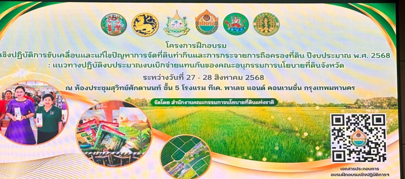 ระหว่างวันที่ 27-28 สิงหาคม 2568 นายฉัตรชัย ศิริรัตน์ สหกรณ์จังหวัดภูเก็ต มอบหมายให้ นางสาวสุวพร หมกทอง นักวิชาการสหกรณ์ชำนาญการ เข้าร่วมโครงการฝึกอบรมเชิงปฏิบัติการขับเคลื่อนและแก้ไขปัญหาการจัดที่ดินทำกินและการกระจาย การถือครองที่ดิน ปีงบประมาณ พ.ศ. 2568 : แนวทางปฏิบัติงบประมาณงบเบิกจ่ายแทนกันของคณะอนุกรรมการนโยบายที่ดินจังหวัด จัดโครงการโดยสำนักงานคณะกรรมการนโยบายที่ดินแห่งชาติ วัตถุประสงค์ของโครงการเพื่อสร้างความเข้าใจต่อแนวทางปฏิบัติ หลักเกณฑ์ วิธีการ และขั้นตอนการปฏิบัติงานการเบิกจ่ายเงินงบประมาณเบิกแทนกันของ สคทช. ณ โรงแรม ทีเค. พาเลซ แอนด์คอนเวนชั่น กรุงเทพมหานคร