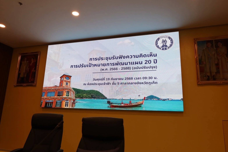 วันศุกร์ที่ 19 กันยายน พ.ศ.2568 เวลา 09.30 น. นายฉัตรชัย ศิริรัตน์ สหกรณ์จังหวัดภูเก็ต เข้าร่วมประชุมรับฟังความคิดเห็นการปรับเป้าหมายการพัฒนาจังหวัด 20 ปี (พ.ศ.2566 - 2585) เพื่อให้เป็นไปตามหลักเกณฑ์และวิธีการจัดทำเป้าหมายการพัฒนาจังหวัด 20 ปี โดยมีนายโสภณ สุวรรณรัตน์ ผู้ว่าราชการจังหวัดภูเก็ต เป็นประธานในการประชุมฯ ณ ห้องประชุมเจ้าฟ้า ชั้น 5 ศาลากลางจังหวัดภูเก็ต