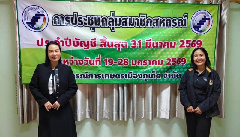 วันพุธที่ 21 มกราคม 2569 เวลา 13.30 น. นายธีรยุทธ ชุมนวล สหกรณ์จังหวัดภูเก็ต มอบหมายให้ นางสาวธนภร สังขพันธ์ ผู้อำนวยการกลุ่มส่งเสริมสหกรณ์ 1 และ นางสาวสุภาวดี เจริญผล นักวิชาการสหกรณ์ชำนาญการ เข้าร่วมประชุมกลุ่มสมาชิกสหกรณ์การเกษตรเมืองภูเก็ต จำกัด ประจำปีบัญชีสิ้นสุดวันที่ 31 มีนาคม 2569 เพื่อสร้างการรับรู้การมีส่วนร่วมของสมาชิก ส่งเสริมเพิ่มศักยภาพการยกระดับความเข้มแข็งของสหกรณ์ และเปิดโอกาสให้สมาชิกได้มีส่วนร่วมในการเสนอแนะแนวทางการดำเนินงานของสหกรณ์ ตลอดจนวินิจฉัยปัญหาต่าง ๆ เพื่อให้สหกรณ์ได้ดำเนินงานอย่างมีประสิทธิภาพ เพื่อประโยชน์ของมวลสมาชิก ณ ห้องประชุมสหกรณ์การเกษตรเมืองภูเก็ต จำกัด อำเภอเมืองภูเก็ต จังหวัดภูเก็ต