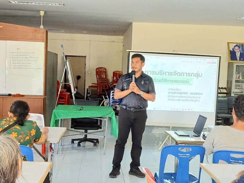 วันอังคารที่ 17 มีนาคม 2569 เวลา 09.00 น. นายธีรยุทธ ชุมนวล สหกรณ์จังหวัดภูเก็ต มอบหมายให้นางสาวสุวพร หมกทอง นักวิชาการสหกรณ์ชำนาญการ เป็นวิทยากรถ่ายทอดความรู้เรื่องการบริหารจัดการกลุ่ม การทำข้อบังคับกลุ่ม ของโครงการสนับสนุนกลุ่มพัฒนาชาวสวนยาง การยางแห่งประเทศไทย เพื่อเตรียมความพร้อมในการพัฒนาด้านการตลาดให้มีมาตรฐานตามความต้องการของลูกค้า เป้าหมายเกษตรกร จำนวน 30 คน ณ สวนทุเรียนร้อยปีบ้านแขนน หมู่ที่ 2 ตำบลเทพกระษัตรี อำเภอถลาง จังหวัดภูเก็ต