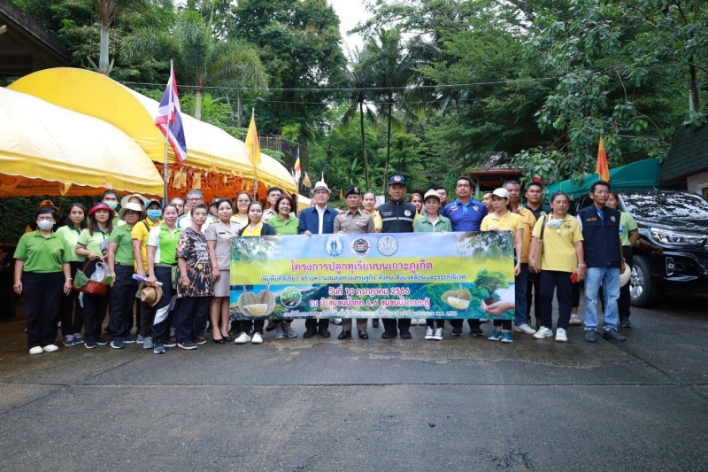 วันจันทร์ที่ 10 กรกฎาคม 2566 เวลา 15.00 น. นางสาวสุมนา ณ นคร นักวิชาการสหกรณ์ชำนาญการ รักษาราชการแทนสหกรณ์จังหวัดภูเก็ต มอบหมายให้ นางสาวนภัสสร ด้วงนุ้ย นักวิชาการสหกรณ์ปฏิบัติการพร้อมด้วยบุคลากรสำนักงานสหกรณ์จังหวัดภูเก็ต เข้าร่วมโครงการปลูกทุเรียนบนเกาะภูเก็ต ปี 2566 ตามแนวคิดเพิ่มพื้นที่สีเขียวเพื่อให้เกิดความสมดุลทางเศรษฐกิจ สังคม สิ่งแวดล้อมและระบบนิเวศ และส่งเสริมเพิ่ม การปลูกทุเรียนเพื่อสร้างความมั่นคงทางอาหาร สร้างรายได้ นำไปสู่การพึ่งตนเองและการพัฒนาคุณภาพชีวิต ของประชาชนในจังหวัดภูเก็ต โดยกำหนดเป้าหมายดำเนินการปลูกทุเรียนบนเกาะภูเก็ตจำนวน 100,000 ต้น/เมล็ด โดยมี พลตำรวจตรีเสริมพันธุ์ ศิริคง ผู้บังคับการตำรวจภูธรจังหวัดภูเก็ต เป็นประธาน ณ ป่าชุมชนน้ำตกกะทู้ ตำบลกะทู้ อำเภอกะทู้ จังหวัดภูเก็ต